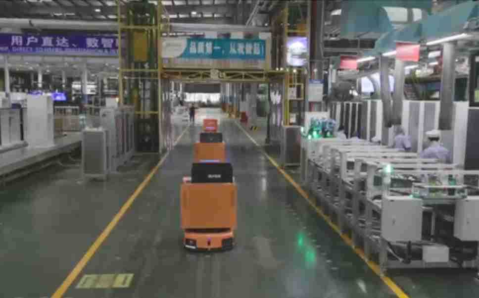 为车载冰箱物流配送打造的智能解决方案,,包含产中物流通过潜伏举升AMR搬运至线边,,,产后成品物流智能仓储,,流程包含产中物流智能齐套入库,,线边安灯叫料AMR智能配送至线边,,,成品入库、、、、出库,,,,通过无人堆高车机器人,,智能仓储管理替代人工作业管理,,,实现更高存储、、更高效率、、、、更具柔性化的解决方案。。